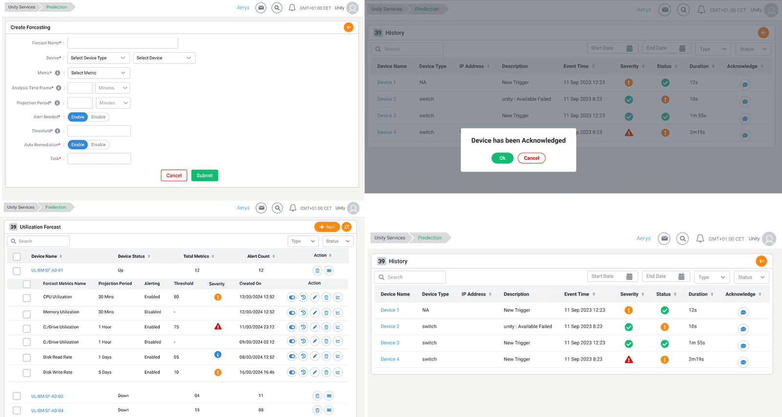 • UnityOne automatically correlates events, with its inherent AI-ML Correlation Engine, by identifying meaningful patterns and creates rules to reduce alert noise.​